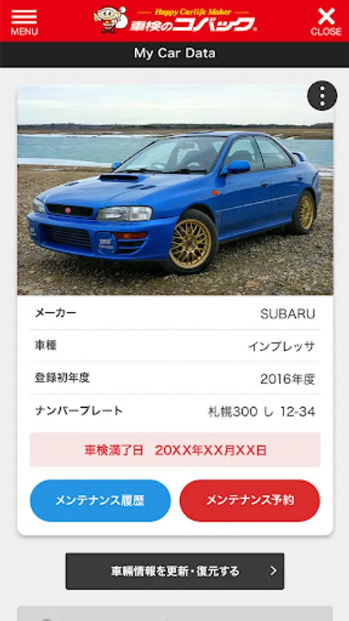 Once you have visited our store and registered your car, enter the necessary information into the app and you will be able to check your car's vehicle inspection period and more on the app!