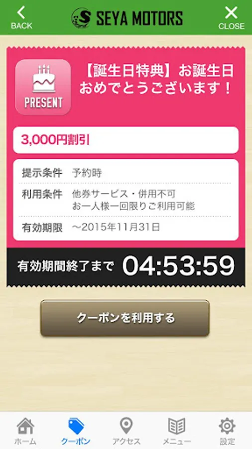 ● ones birthday coupon above to be delivered to the birth Sun Moon, it will not be issued at the time of application installation. (In order to receive the coupon, any birthday input will be required on the user side)