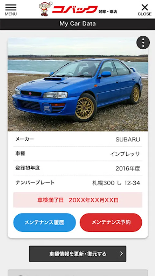 If you come to the store once and have your car registered, you can enter the necessary information in the app, you can check the car inspection time of your own car on the app!