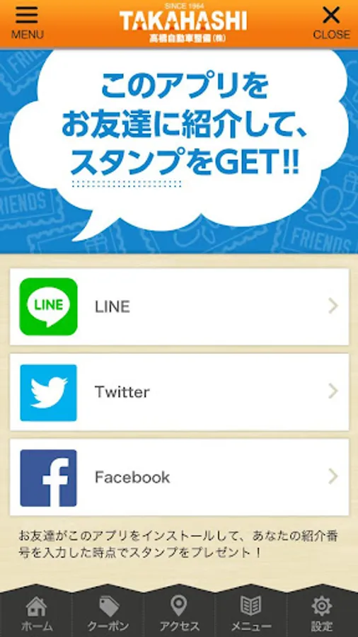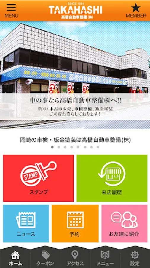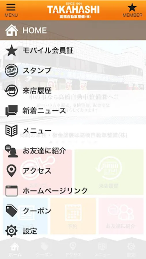 In this app, you deal services of various information and application user limit of "Takahashi car maintenance Co., Ltd." is to come!