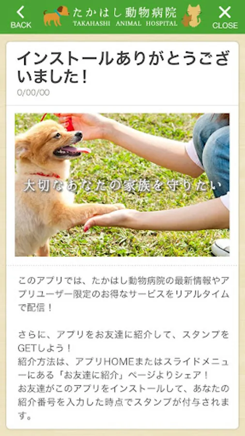 In this app, deals services of various information and application user limit of Takahashi animal hospital is placed in the hands!