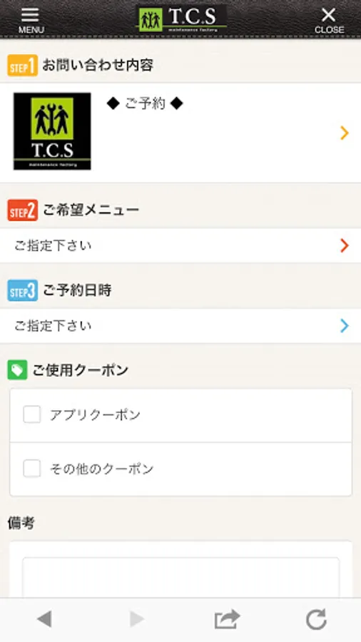 You can request a reservation simply by specifying the desired menu and date and time and sending.