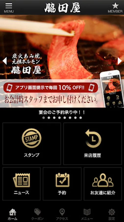 It is the official app of Yakiniku and Hormone Wakitaya Anjo store in Anjo City, Aichi Prefecture.