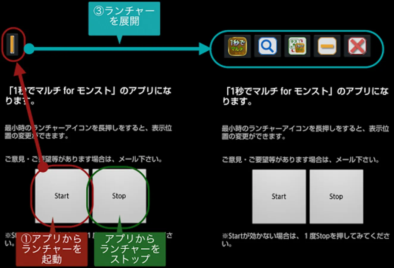 · Simple launcher type of "resident Unkyoku de multi" (https://goo.gl/B0vAxL)
