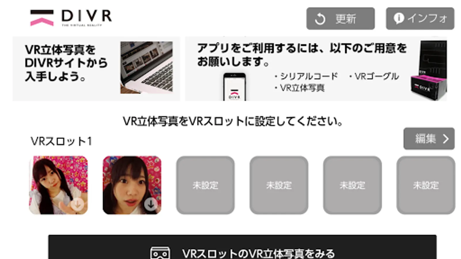 ② In the My page of the DIVR site, set the VR stereoscopic picture to be put in the VR slot.