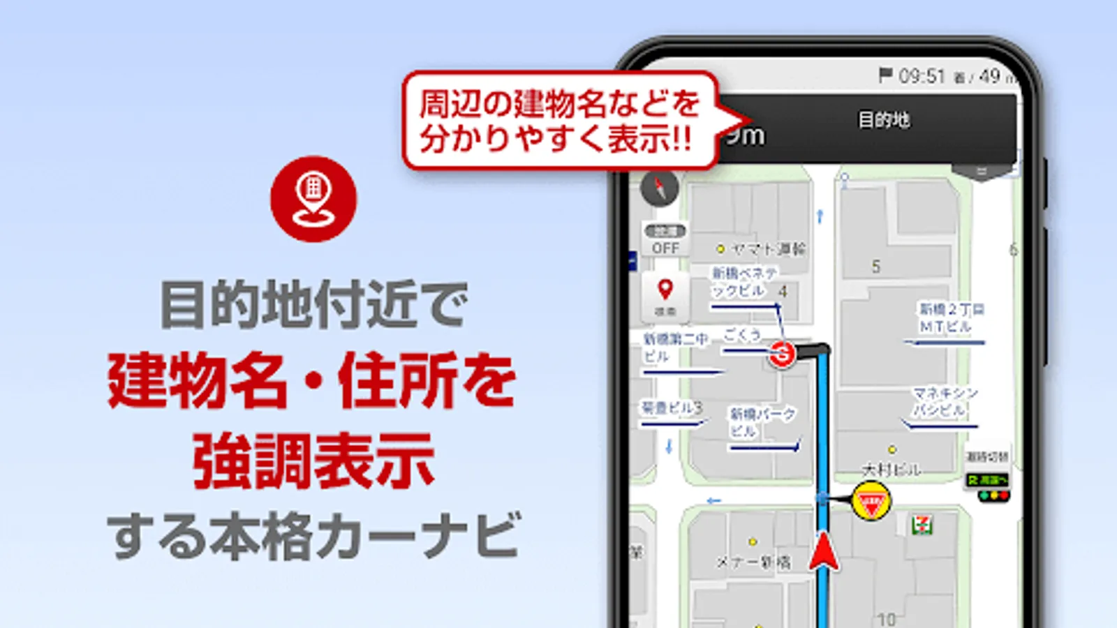 5.In the car navigation system and bicycle navigation system, the names of facilities and buildings in the vicinity of your destination are displayed ="#cc0033"> New!
