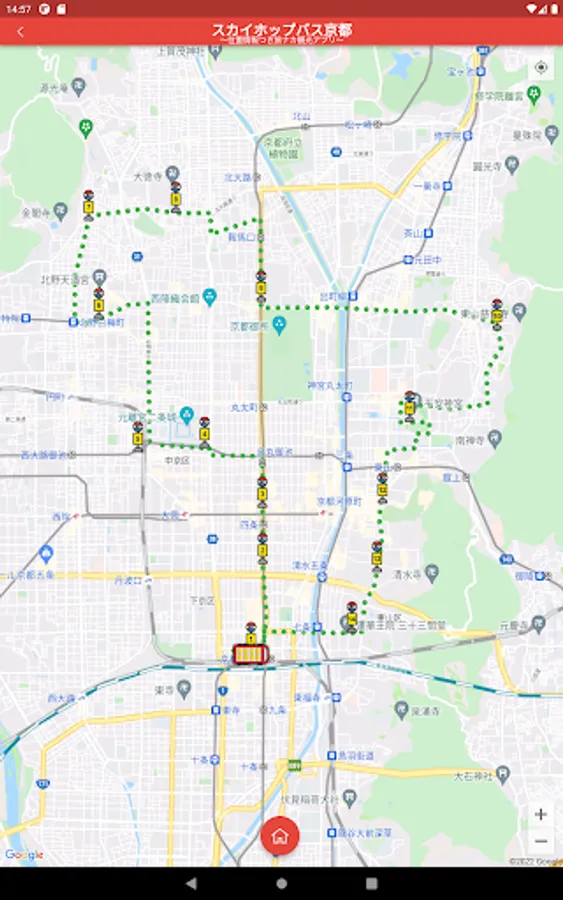 Information on the operation of the Sky Hop Bus that travels around Kyoto City is posted.