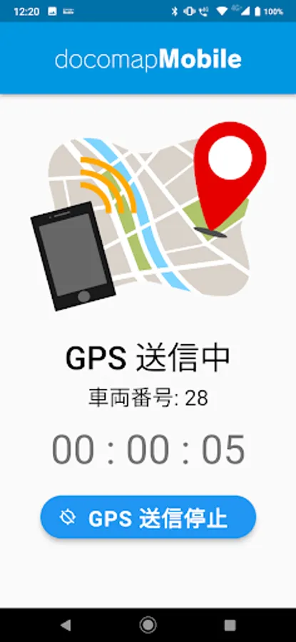docomap Mobile is a smartphone application that transmits location information for a specific time by simply reading the issued QR code with the app. In addition to being able to check the vehicle position transmitted from a smartphone on the DoCoMAP map, the operation manager can also use the existing DoCoMAP standard functions to use real-time traffic information, rain cloud radar, past driving history, etc. .