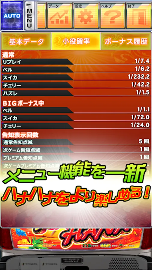 自動でスロットを打ってくれる機能です。データ収集、“ながらプレイ”にオススメです。