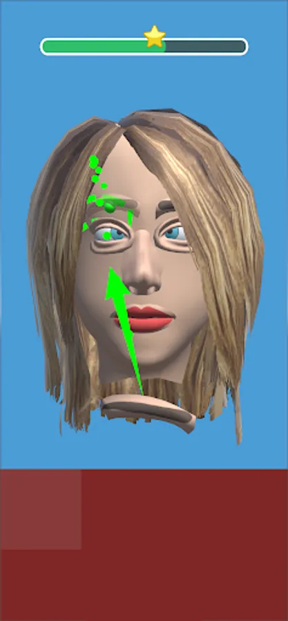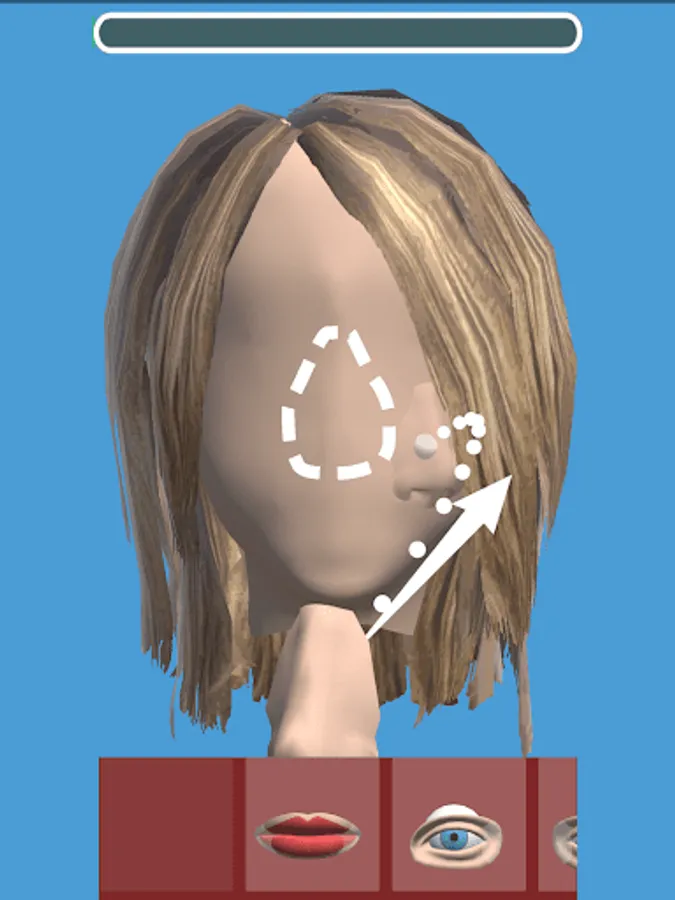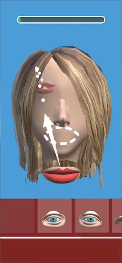 There is a human face without any features, and cutouts of several facial features (such as the eyes, eyebrows, nose and mouth).