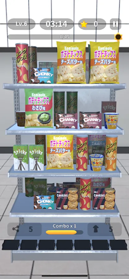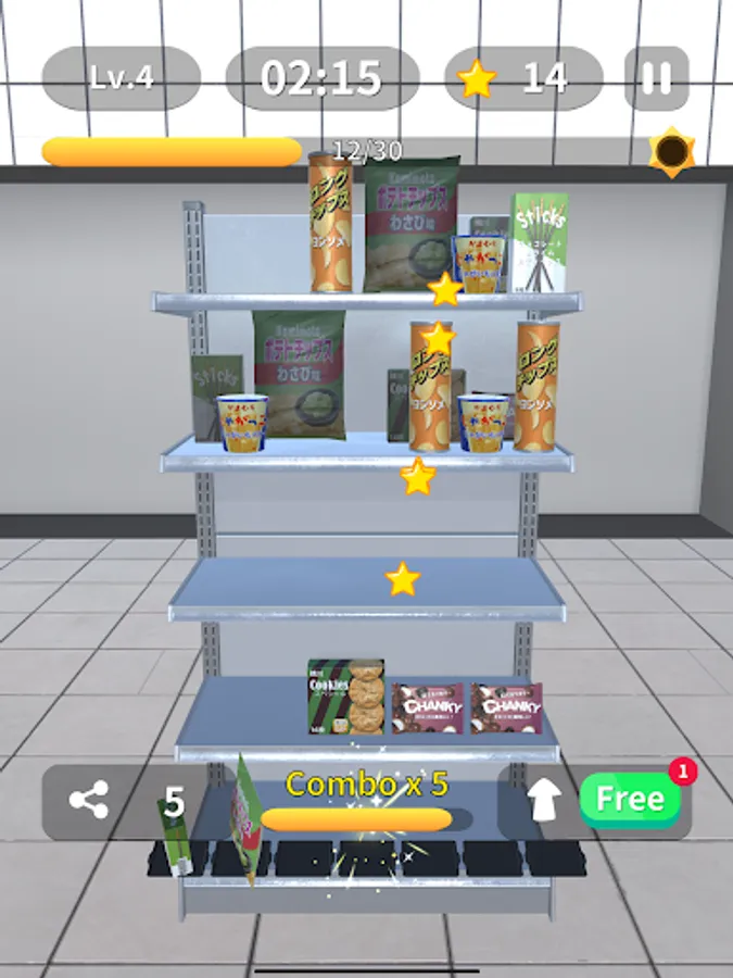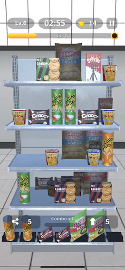 - Keep doing it until you clear all the items on the shelf and you win the level,