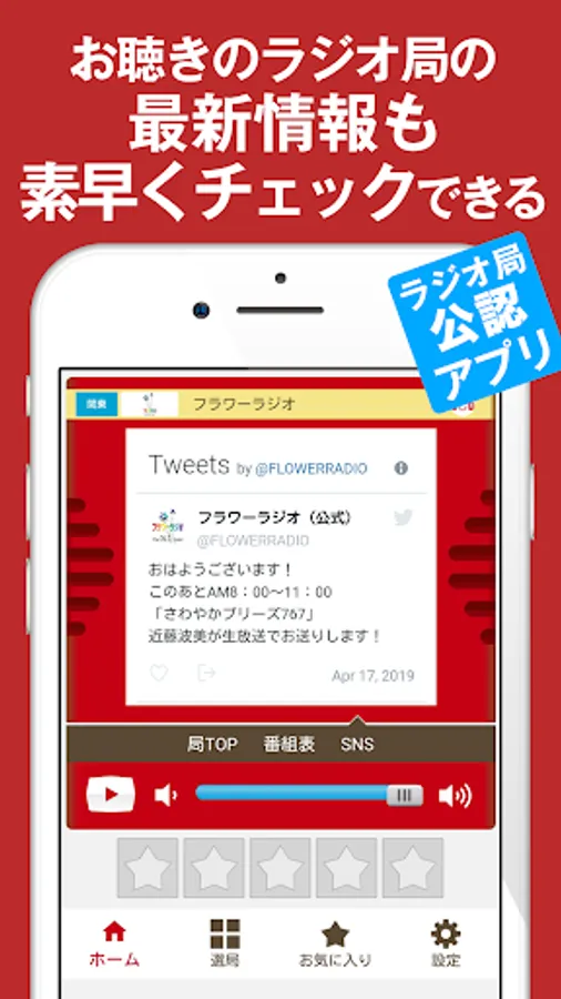 It is a free app certified by radio stations that allows you to enjoy original channels and various programs 24 hours a day.