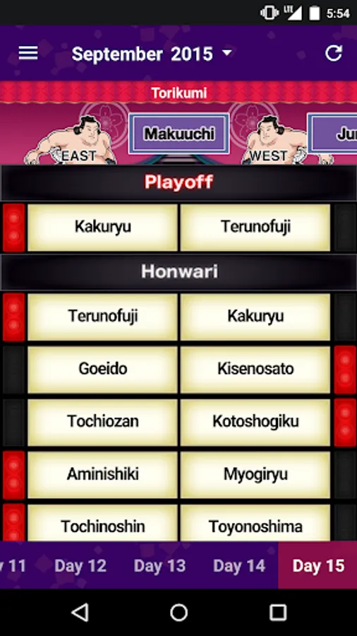 Use the Gohiiki feature to register up to one of your favorite Rikishi for free and get Torikumi results via notifications.