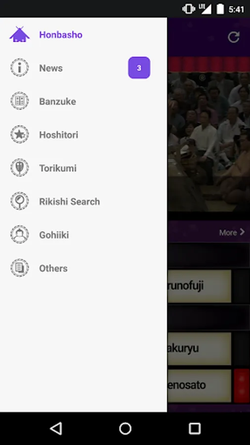 New function""Photo gallery"" was released:You can look the pictures of the official sumo tournament and JUNGYO.