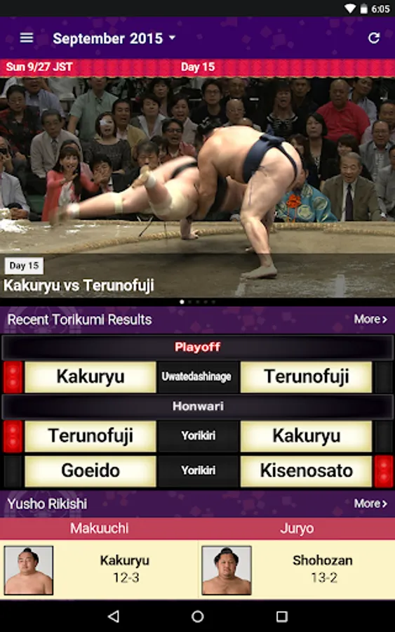 Watch all Makuuchi, Juryo(Include Makushita last 5) Torikumi videos (approx. 600/basho) in near real-time, and browse historic Makuuchi Torikumi going back to the May 2010 Honbasho.