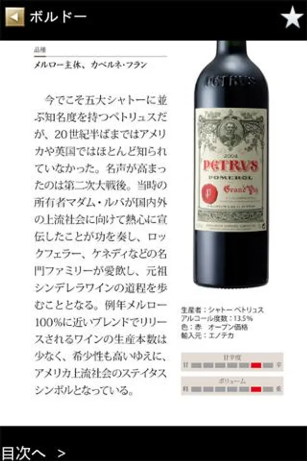 産地別の構成でフランスワインそれぞれの銘柄の特長を解説。各産地の基礎知識をはじめ、銘柄の品種、ボリューム感、渋み、価格の目安がひと目でわかります。