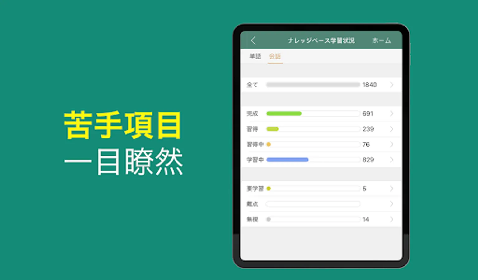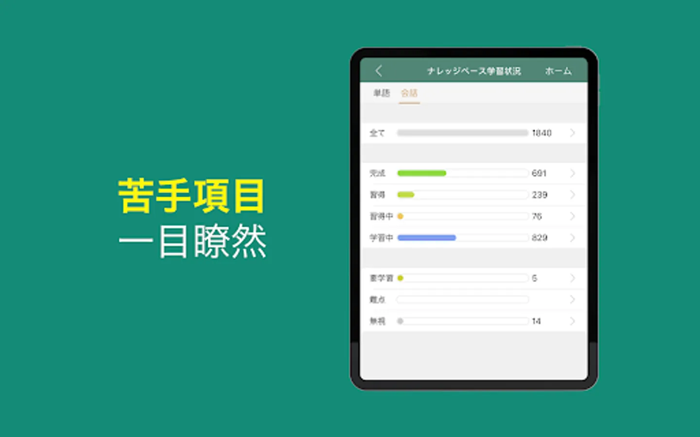 Check the learning status and items you are not good at at a glance with the learning record management function.