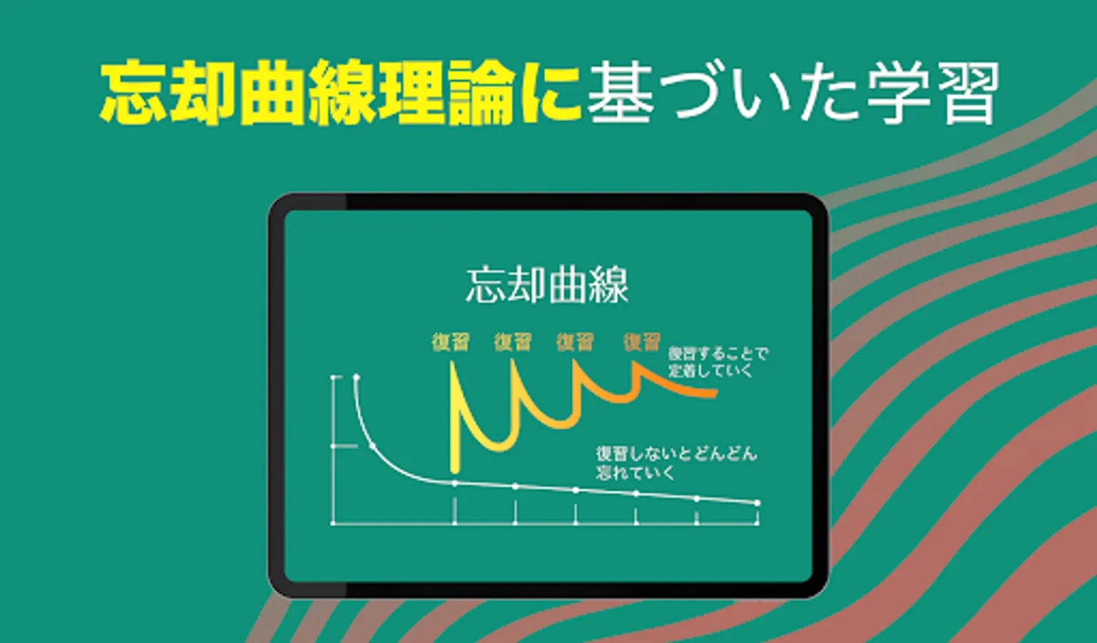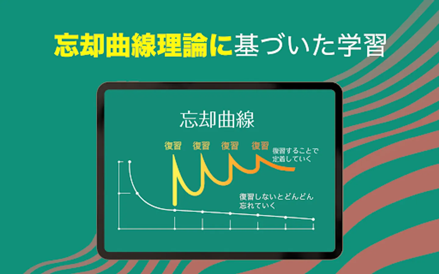 Efficient learning with an emphasis on review based on "Ebbinghaus's forgetting curve theory". You will definitely learn English conversation by reviewing it at the best time.