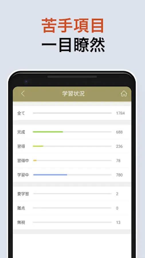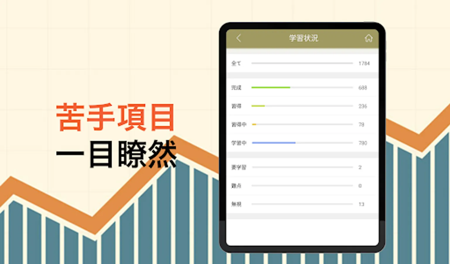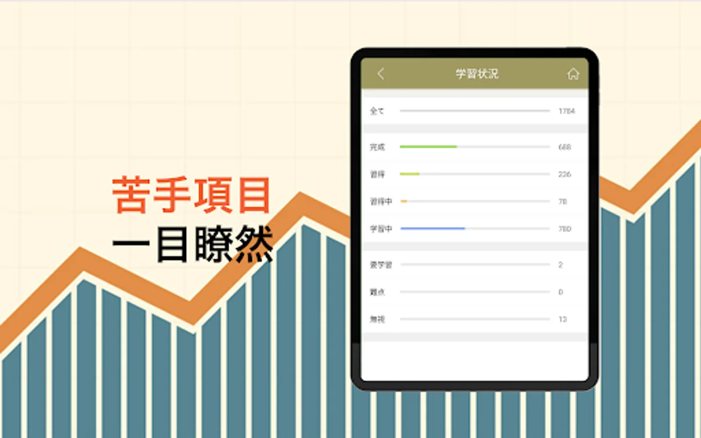 The learning record management function makes it easy to see the learning status and items that you are not good at.