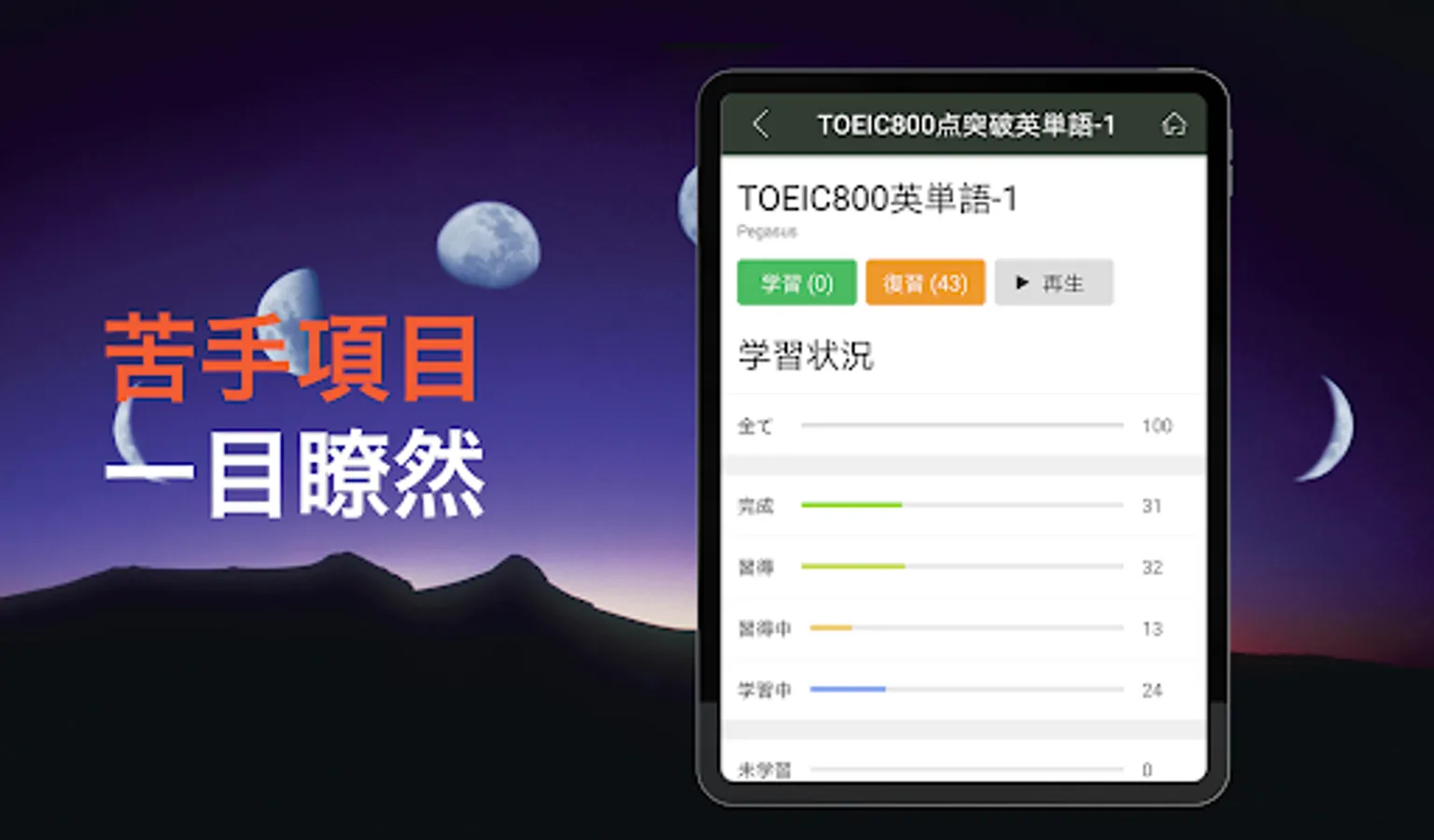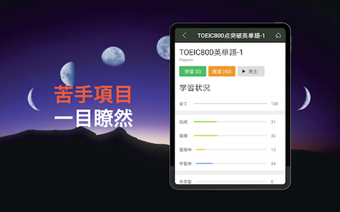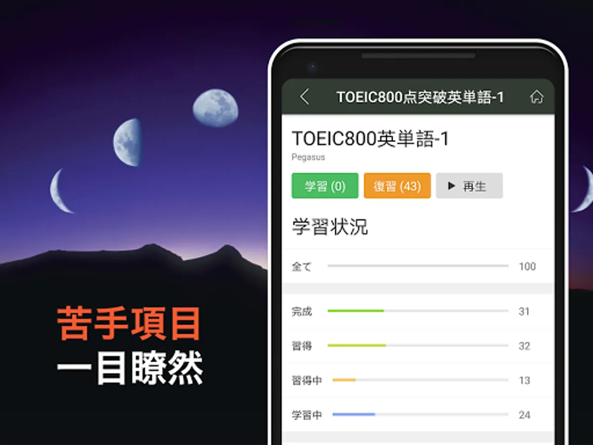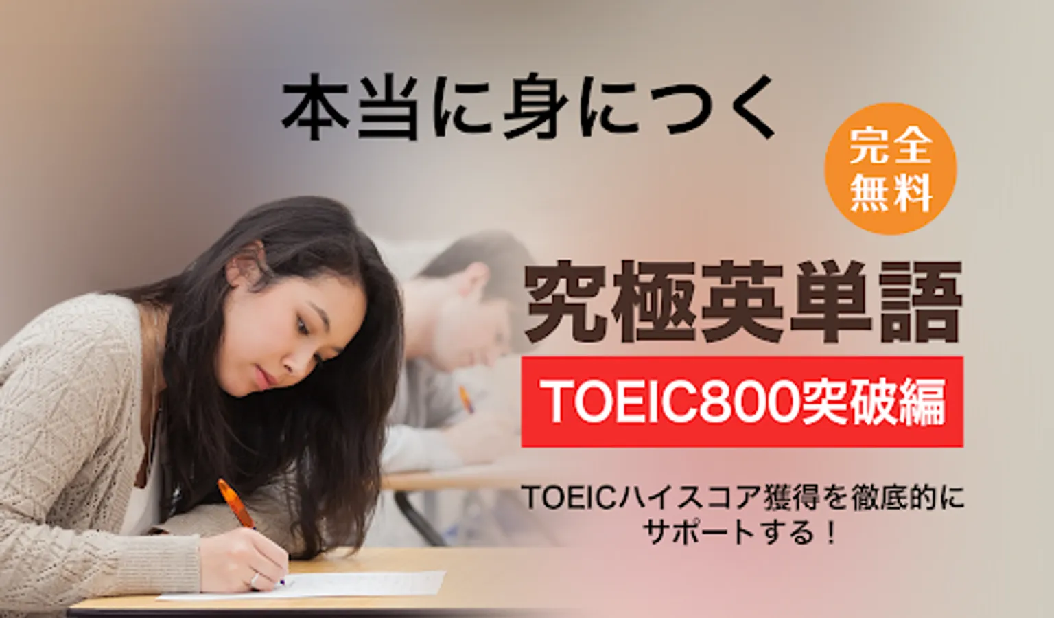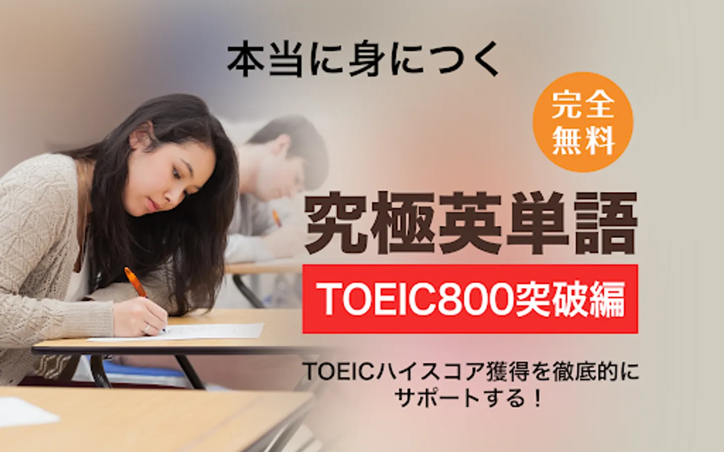 "Ultimate English Words! TOEIC® 800 Points Breakthrough" is an English learning app for those who aim for 800 TOEIC points, following the "Ultimate English Words" system, which is favored by 1 million customers. We promise to efficiently support the development of vocabulary skills that surpass the TOEIC 800 score with our unique and proven learning methods.