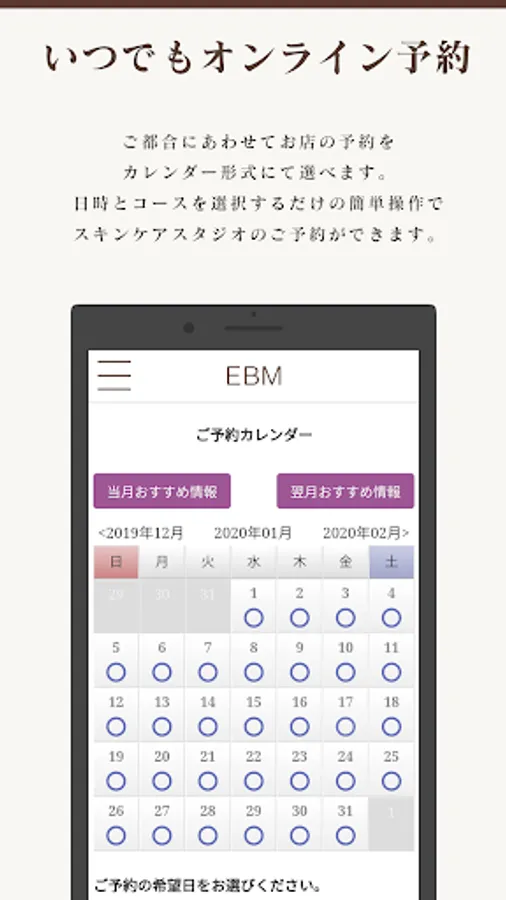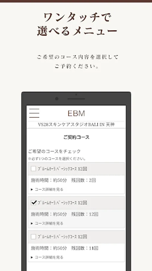 You can make a reservation at the skin care studio with a simple operation just by selecting the date and time and course.