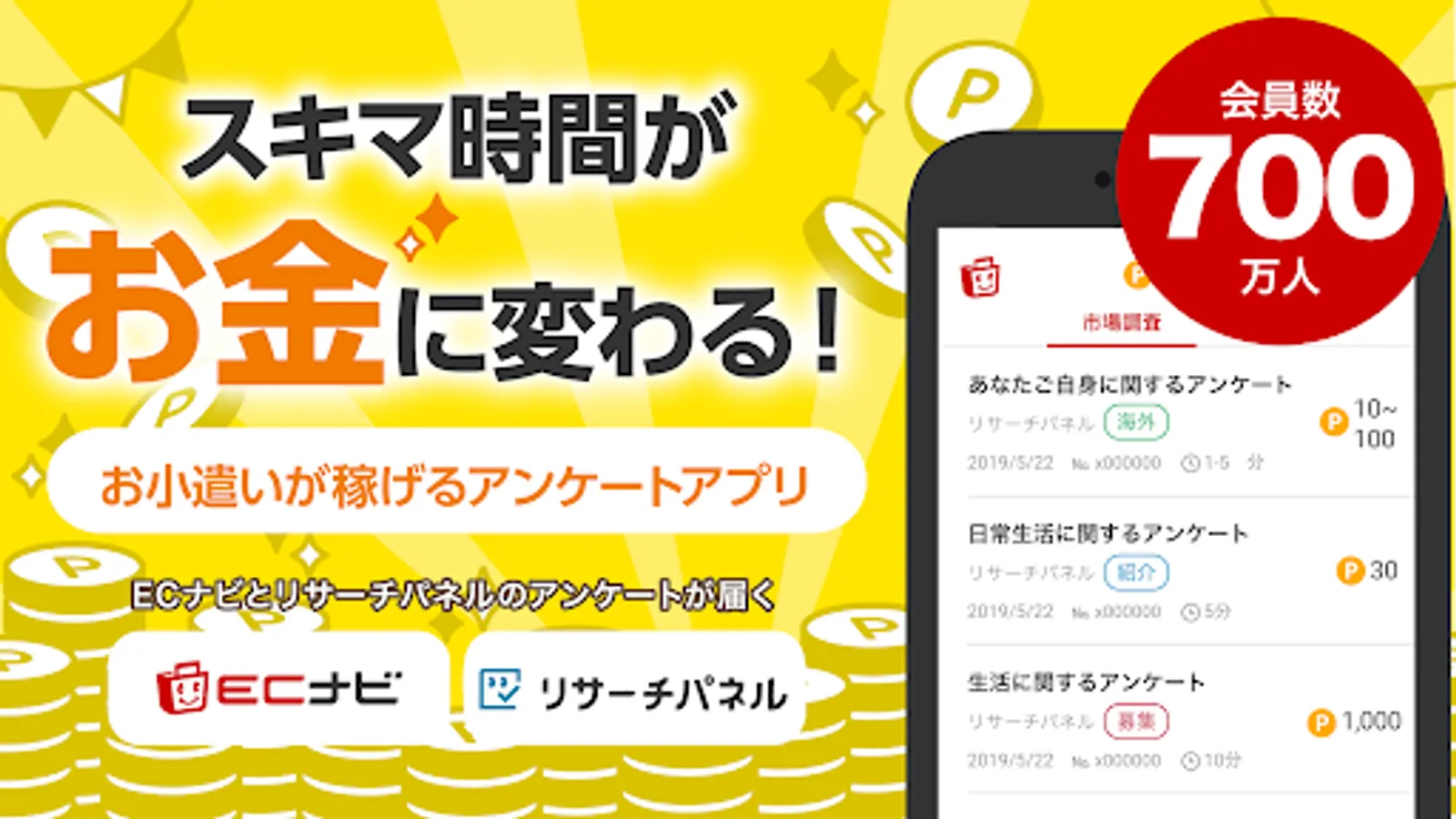 A survey side job/poi activity app for the point site "EC Navi" with over 7.77 million registered users.