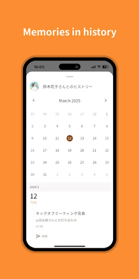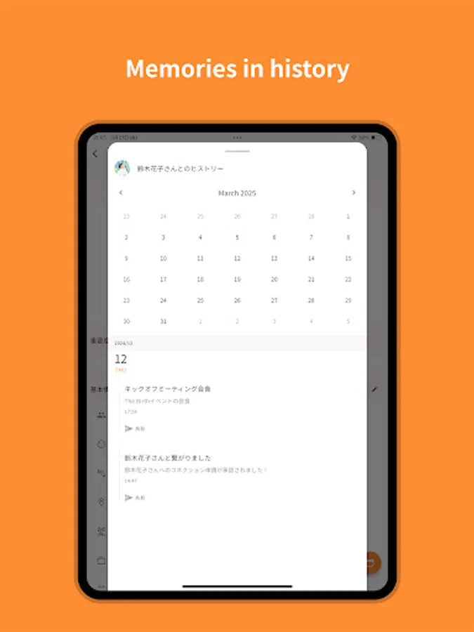 You can manage your memories in chronological order, such as where you met the person, what you did with the person, and so on.