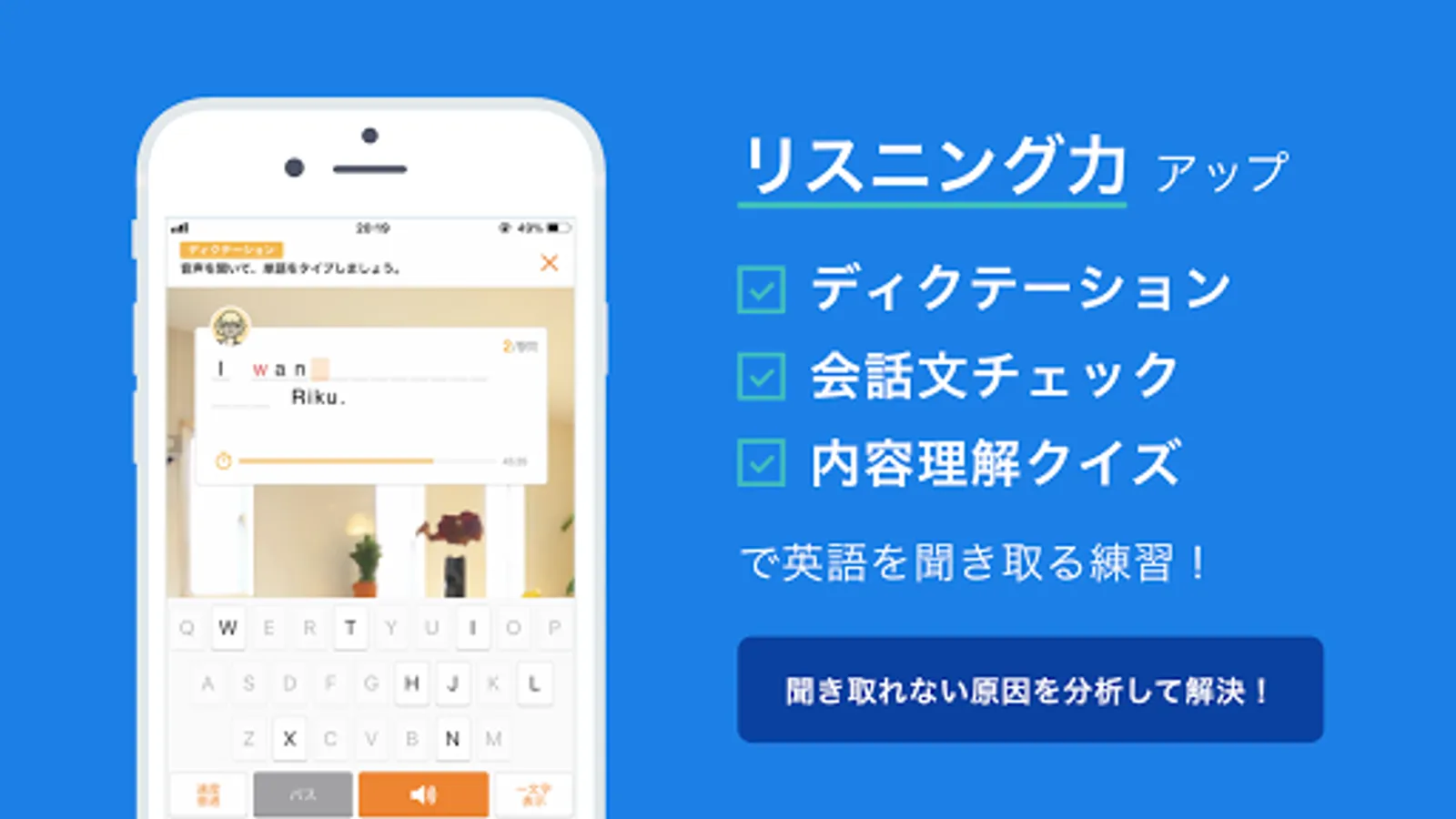From difficult-to-read spelled words and English grammar to listening to conversations, this English learning app recognizes your weaknesses and presents what you are learning.