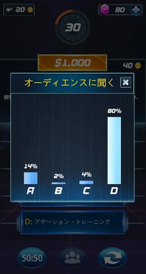 「フィフティーフィフティー」「オーディエンス」機能あります。