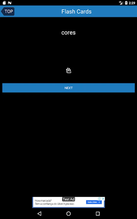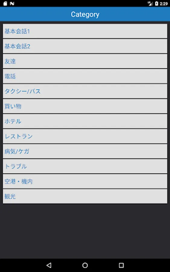 When you select a category, a word or conversation sentence will appear. An answer comes out when you tap under the word.