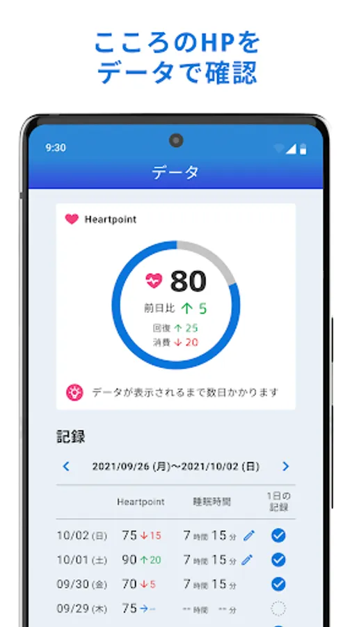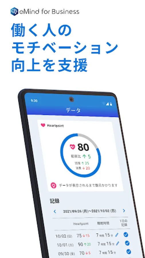 Heartpoint (HP) is a numerical value of the health condition of the heart. AI analyzes behavioral and actual data obtained from smartphones with the eMind for Business app installed, as well as the content of responses to a simple questionnaire once a day, and quantifies the state of mental health.