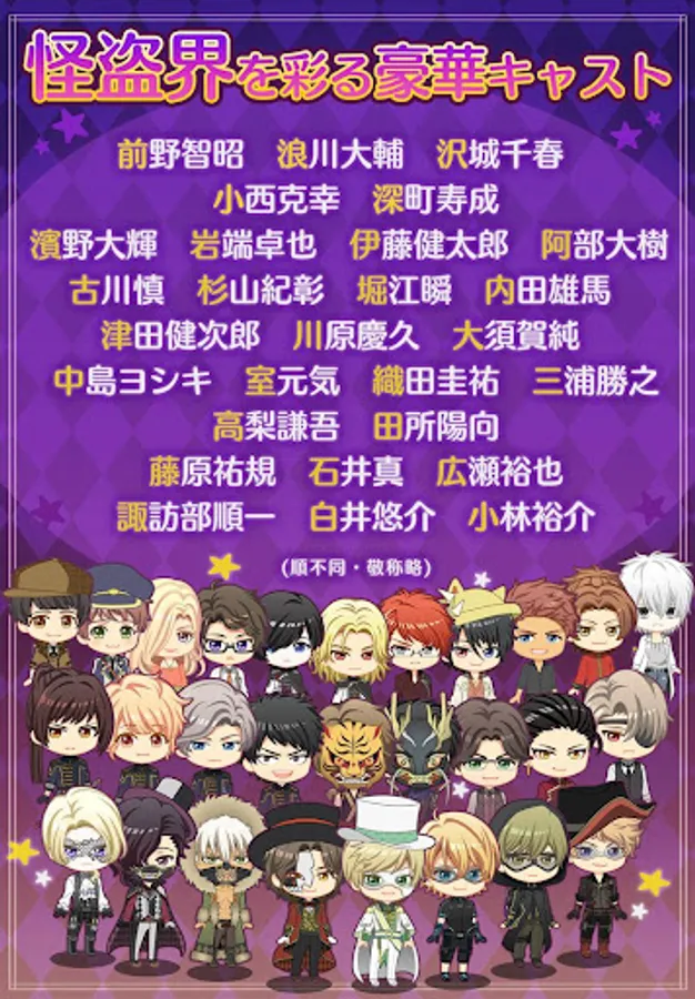 Daiki Abe, Makoto Ishii, Kentaro Ito, Takuya Iwabata, Yuma Uchida, Jun Osuka, Keisuke Oda, Yoshihisa Kawahara, Katsuyuki Konishi, Yusuke Kobayashi, Chiharu Sawashiro, Yusuke Shirai, Noriaki Sugiyama, Junichi Suwabe, Kengo Takanashi, Yomu Tadokoro , Kenjiro Tsuda, Yoshiki Nakajima, Daisuke Namikawa, Daiki Hamano, Yuya Hirose, Toshinari Fukamachi, Yuki Fujiwara, Makoto Furukawa, Shun Horie, Tomoaki Maeno, Katsuyuki Miura, Genki Muro