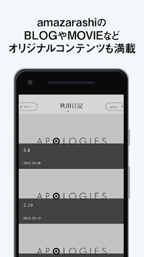 APOLOGIES members can enjoy member-only content such as Hiromu Akita's blog and live visitor privilege gifts.