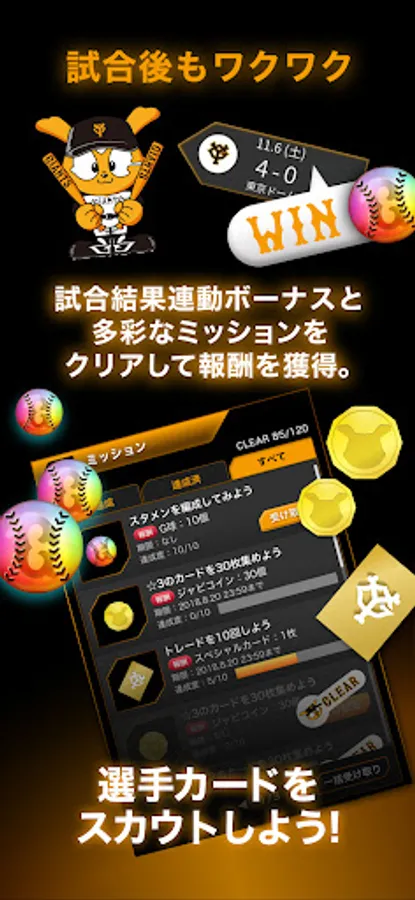 "Giants Stars" is a digital trading card collection app where you can get Yomiuri Giants player cards.