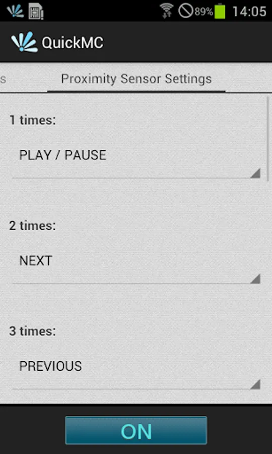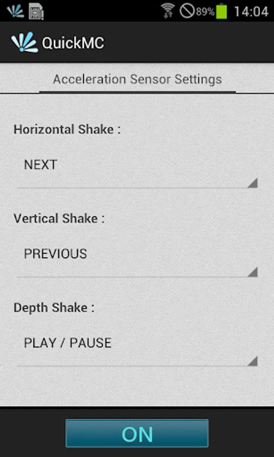 This app can send commands to operate other music players (Such as "Play", "Stop", "Next", "Previous") by using an acceleration sensor and proximity sensor.