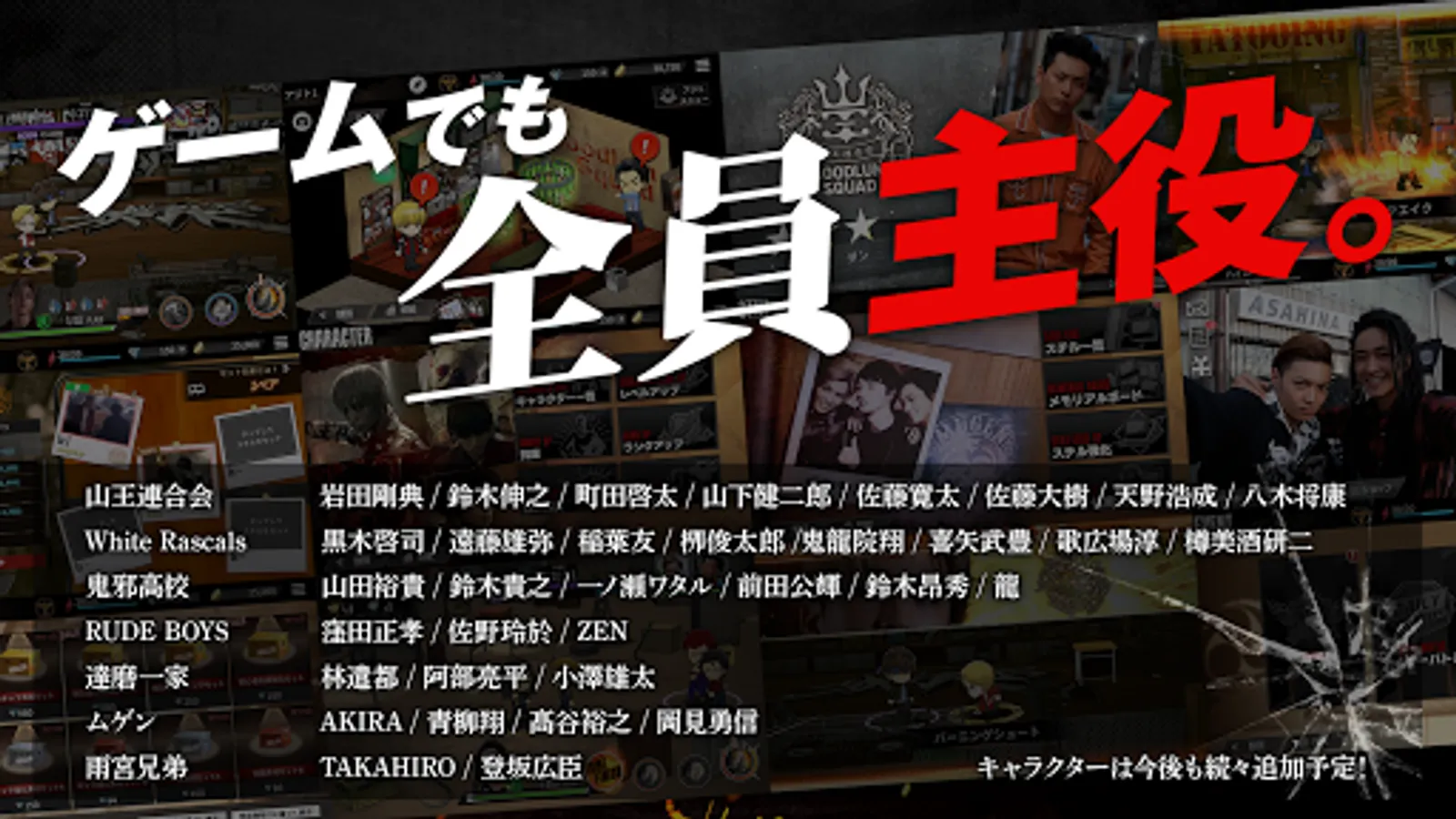 "Everyone plays a leading role in the game!" "HiGH & LOW", which depicts the friendship and passion of men, is now available as the first game app!