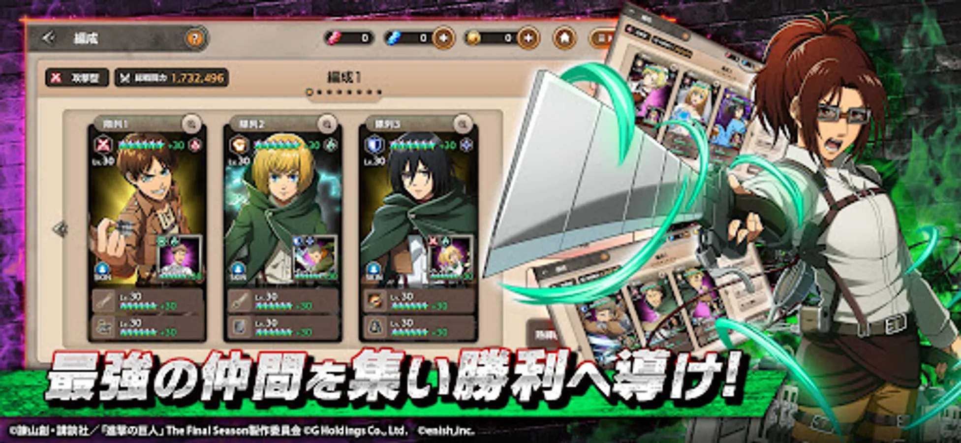 Eren, Mikasa, Armin, Levi, Hange, Erwin and others appear in the game!