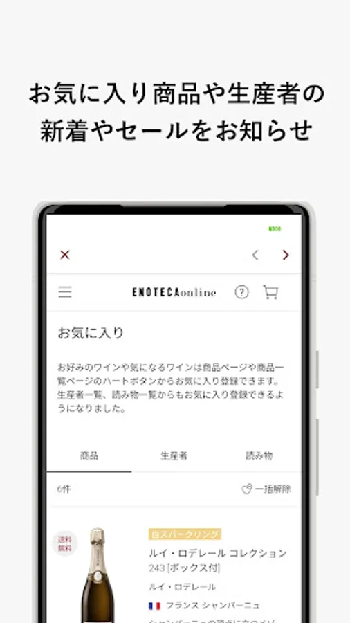 Get daily updates on wine sales. You can purchase any wine you like. Once you log in, you can shop smoothly from the app without logging in.