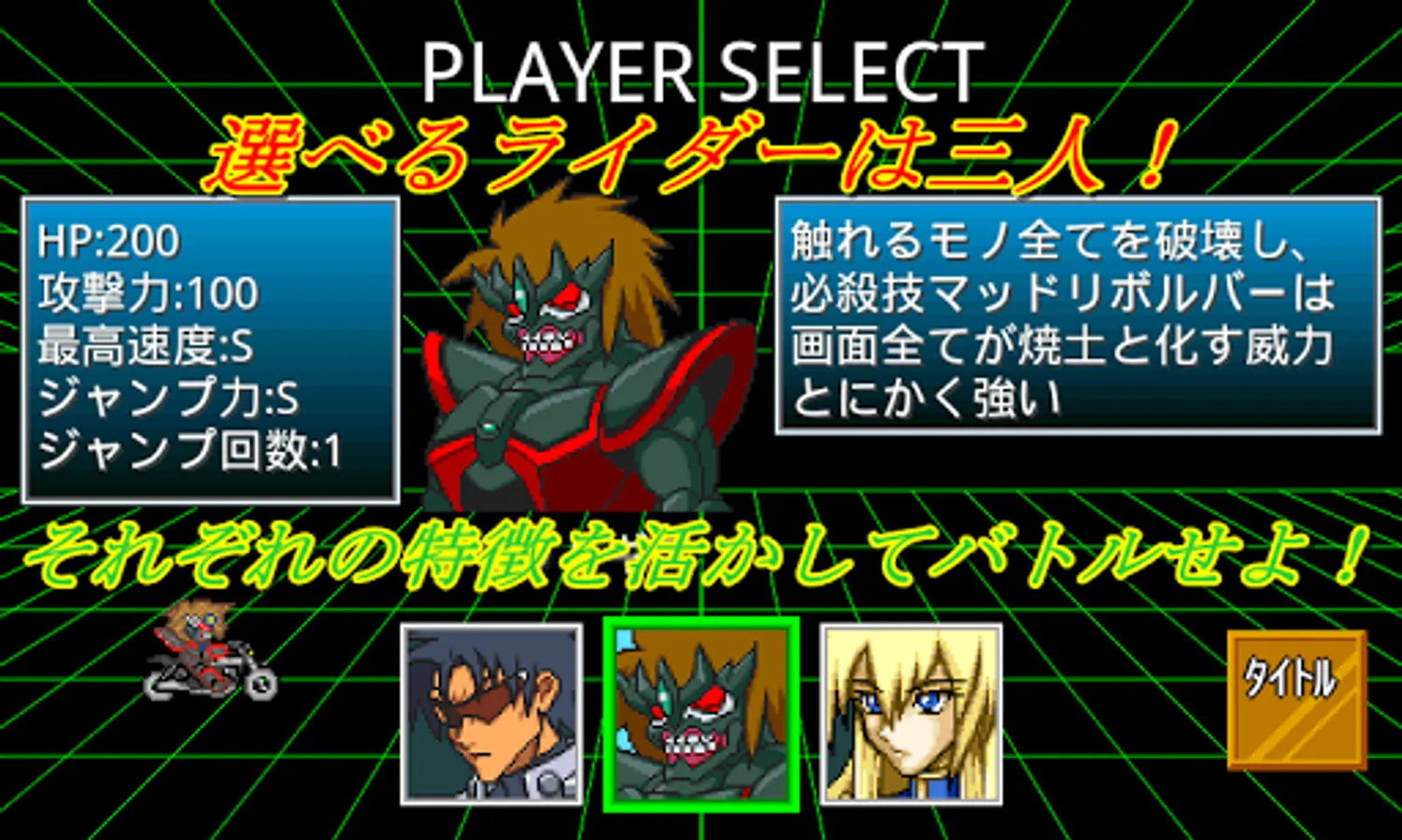 ・ Manipulate three riders with different characteristics!