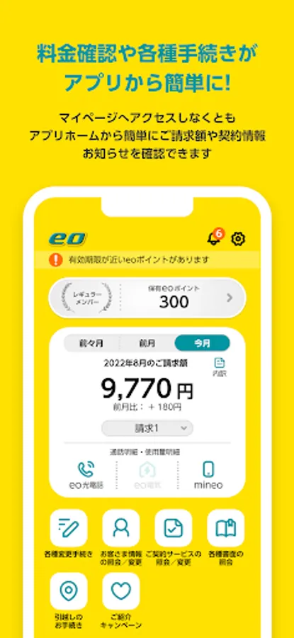After you start using the service, you can use the eo app to check the billed amount and make various changes.