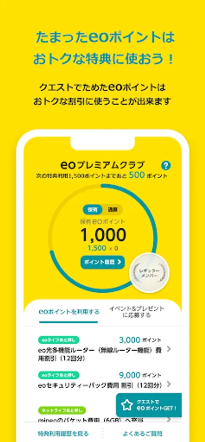 Accumulated points can be used for eo Premium Club benefits and can be easily applied through the eo app.