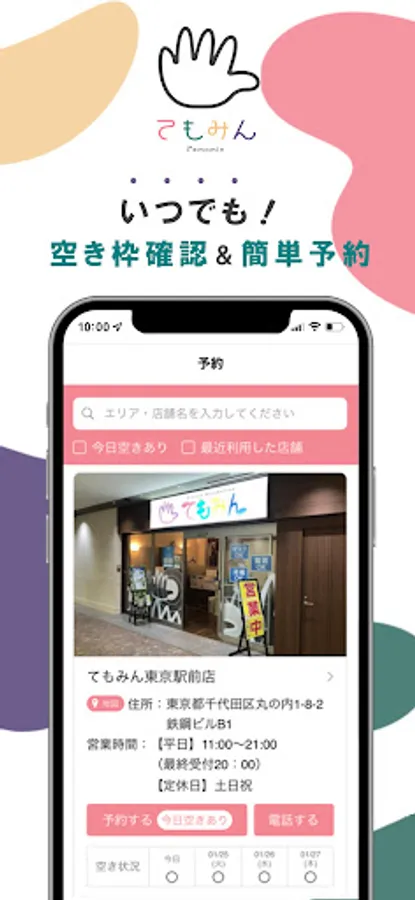 誰でも気軽に利用できるカジュアルリラクゼーションスペースとして、1996年1月に東京駅前に『てもみん』の1号店がオープン。
