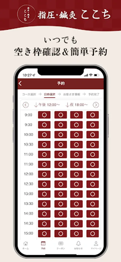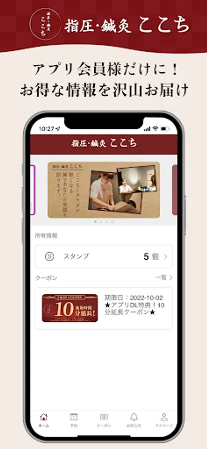 You can receive the latest information and deals of shiatsu acupuncture and moxibustion Kokochi through the app. In addition, you can check the menu and desired time slot and make reservations from your smartphone at any time. By installing the app, you can use shiatsu, acupuncture and moxibustion Kokochi more conveniently.