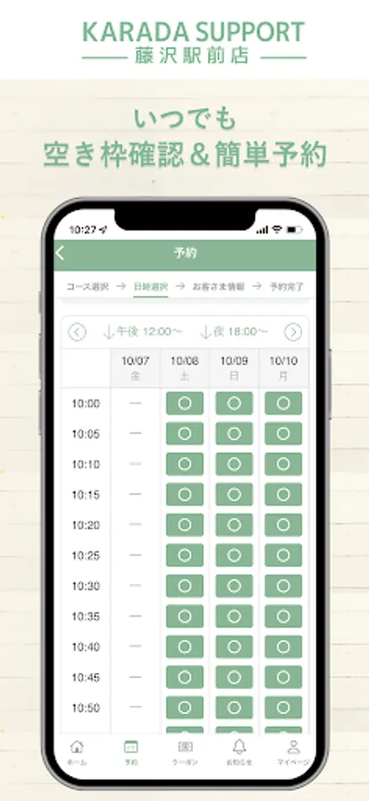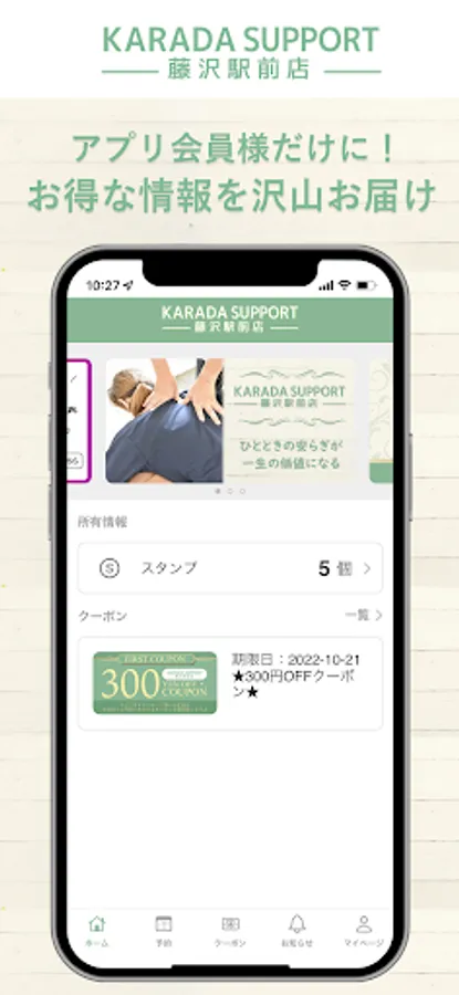 You can receive the latest information and advantageous information of KARADA SUPPORT Fujisawa Ekimae store. In addition, you can check the menu and desired time slot and make reservations from your smartphone at any time. By installing the app, you can use the KARADA SUPPORT Fujisawa Ekimae store more conveniently and closer.