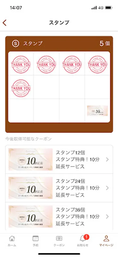 ご来店スタンプをためるとお得なクーポンが発行されます(ご利用条件がある場合がございます)