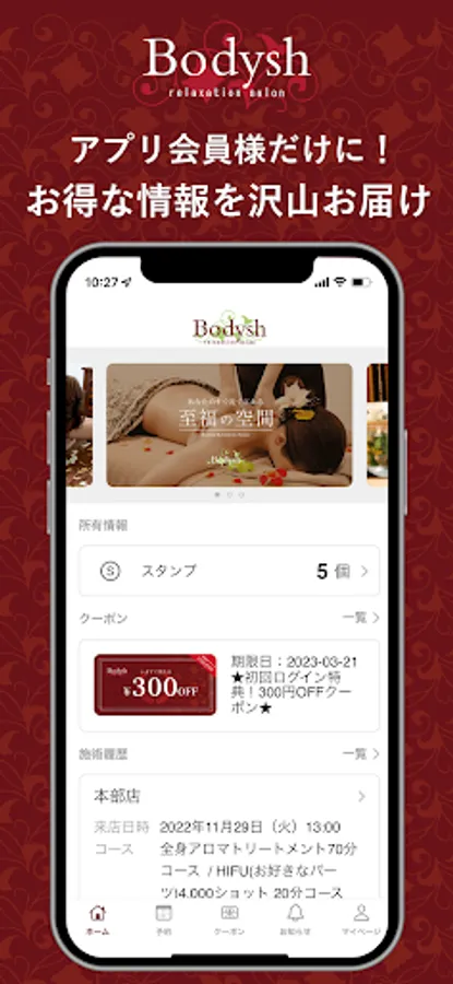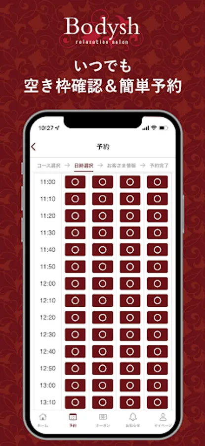 You can receive the latest information and deals of Bodysh through the app. In addition, you can check the menu and desired time slot and make reservations from your smartphone at any time. By installing the app, you can use Bodysh more conveniently and close to you.