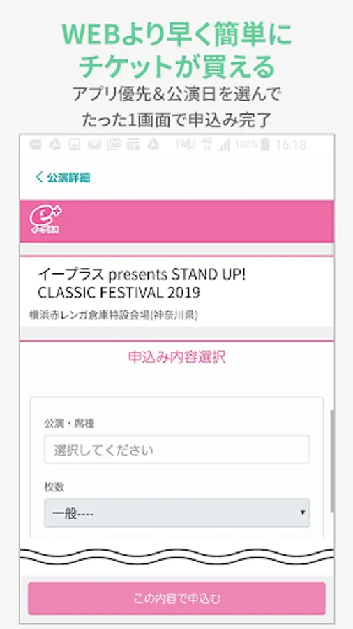 After selecting the performance date, you can complete the application simply by selecting the seat type and number of tickets and entering the password. There are multiple steps on the application screen on the website, but the app only has one screen (*).