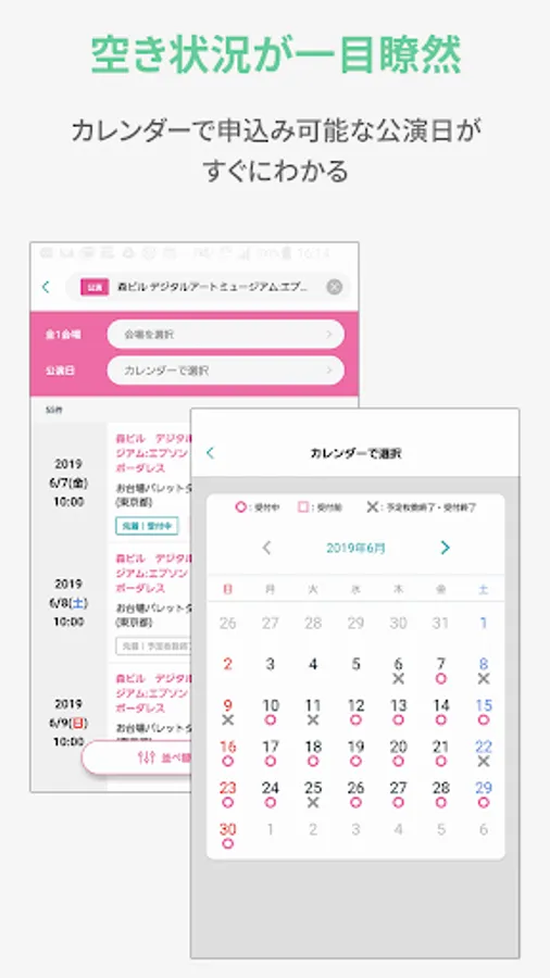 You can check the availability from the calendar and apply. It is very convenient for stage performances and events with many performances.