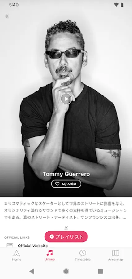 In addition to the artist's appearance schedule, it is equipped with functions such as listening to each artist's playlist!