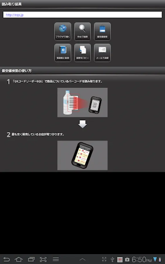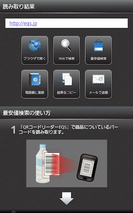 After reading the QR code, you can automatically fly to the site or Google Play without displaying the URL.